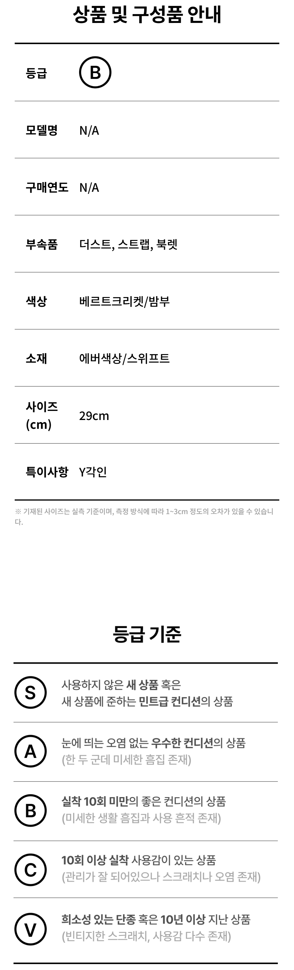 모든 상품(가죽, 의류, 잡화, 슈즈 등)은 사용자의 사용방법과 환경에 따라 변형, 변색이 될 수 있으니 반드시 취급 라벨에 표시된 관리 안내를 따르시길 권장 드립니다. 이는 정도의 차이가 있으며 과도한 체열과 땀, 습기, 빛, 마찰은 제품의 손상 및 변형을 일으킬 수 있으므로 주의하시길 바랍니다.