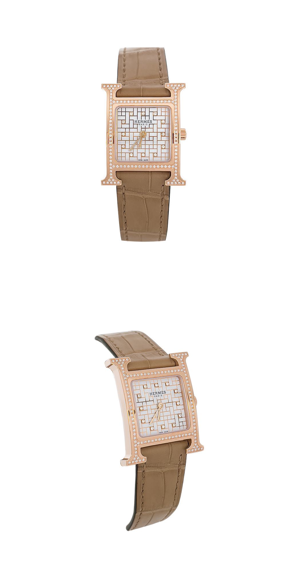 에르메스 H아워 PM 18K 로즈골드 다이아몬드베젤 화이트판