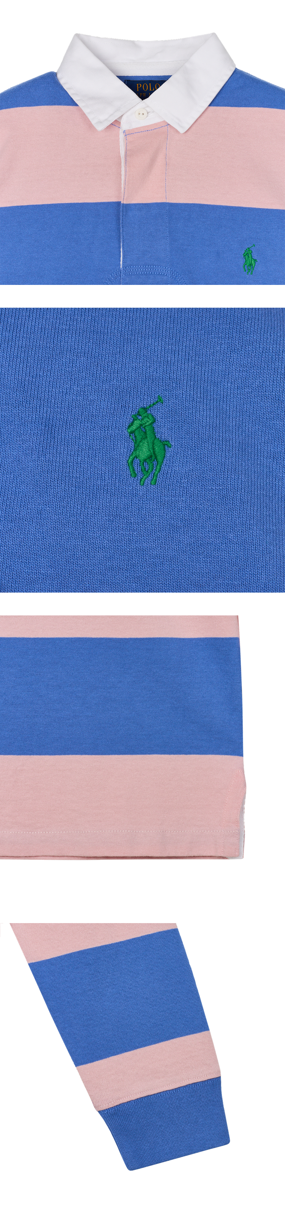 < KREAM은 랄프로렌 코리아 공식 파트너사로 모든 상품은 랄프로렌 코리아(유)에서 공급받은 정식 수입 제품입니다 > 볼드한 스트라이프와 시그니처 포니 자수가 특징인 폴로 랄프 로렌의 클래식 핏 스트라이프 저지 럭비 셔츠 핑크 - 25FW입니다. - 부드러운 코튼 저지 소재의 럭비 티셔츠 - 클래식 핏 - 트윌 럭비 칼라 & 3 버튼 플라켓 - 밑단 슬릿 디자인 - 좌측 가슴 쪽 시그니처 포니 자수 디테일