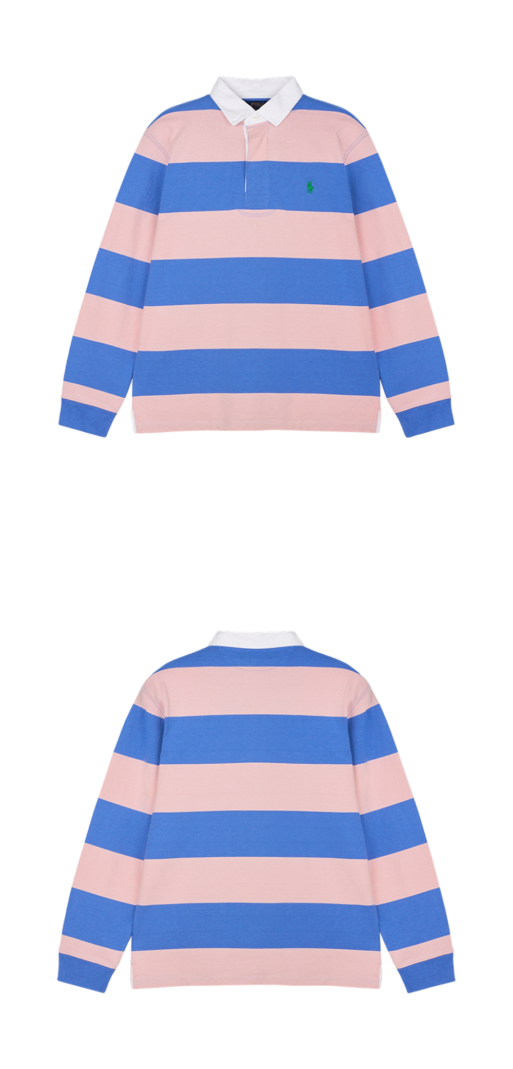 폴로 랄프 로렌 클래식 핏 스트라이프 저지 럭비 셔츠 핑크 - 25FW