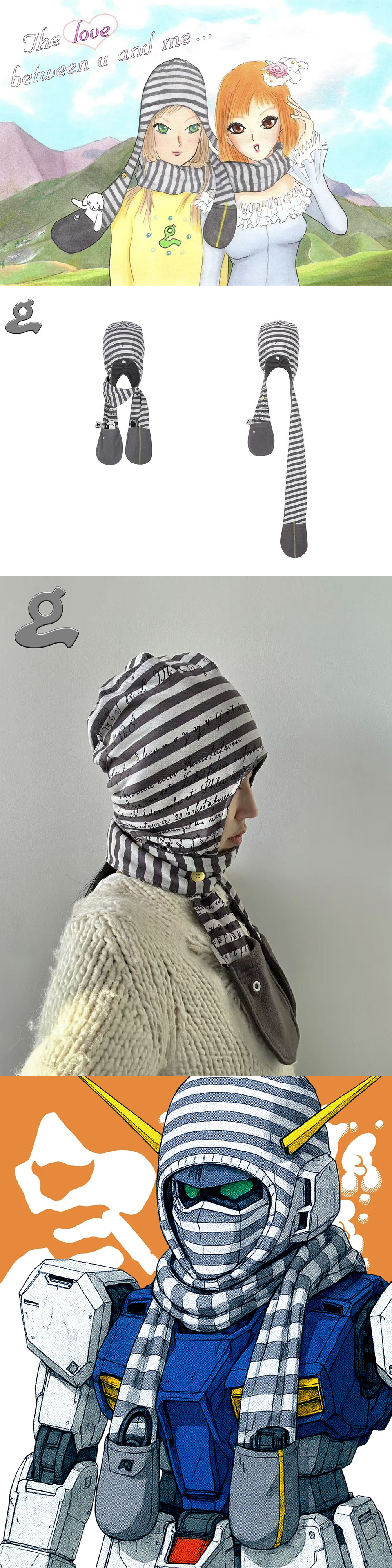 GRAPE SD Gunbam Code Print Striped Hooded Scarf Hat