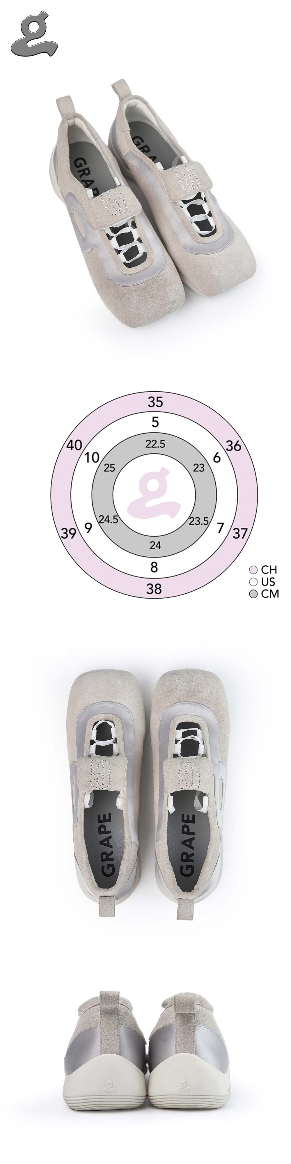 (W) GRAPE Retro Strappy Tongue Sneakers Grey