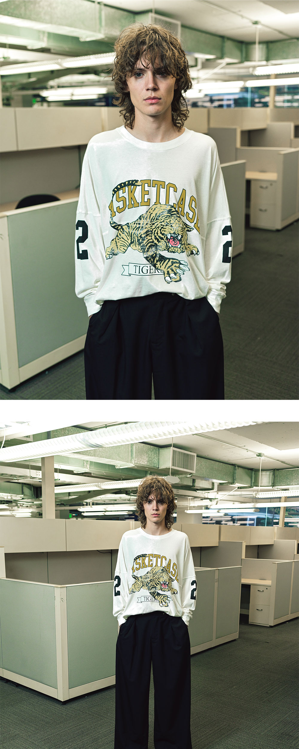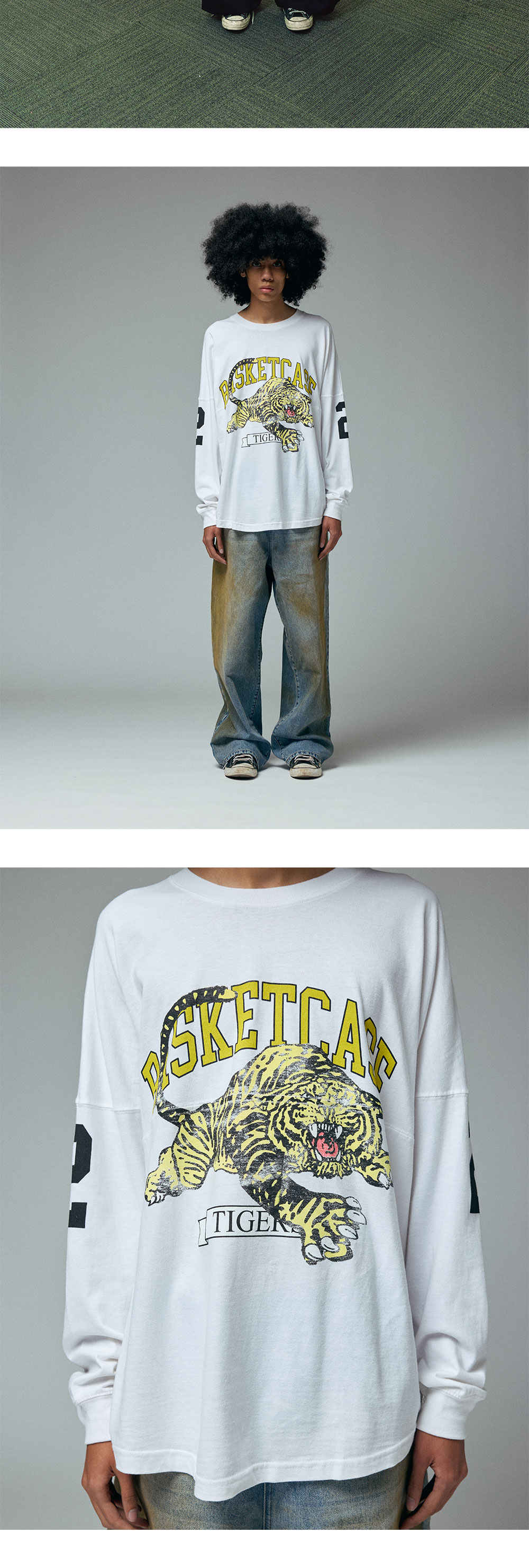 바스켓케이스 타이거 풋볼 롱슬리브 화이트 - 25SS