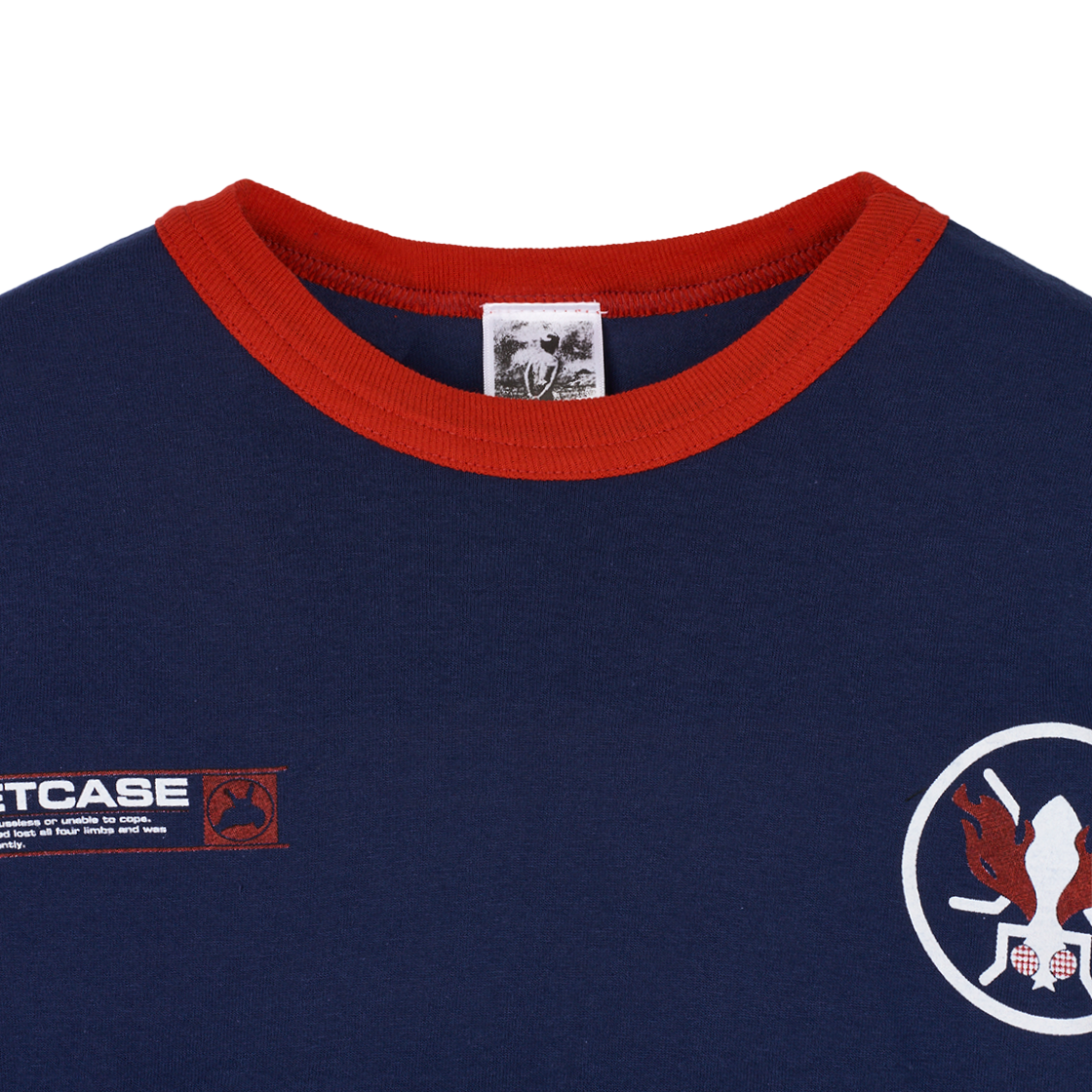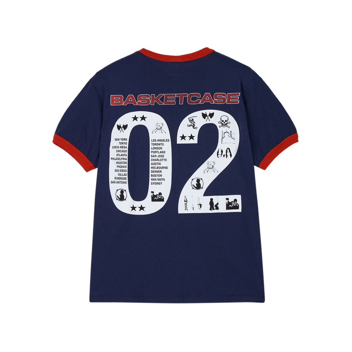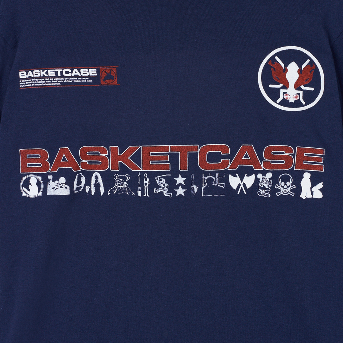 스포티한 무드가 느껴지는 바스켓케이스의 컴퓨터 링거 네이비 레드입니다. - 소매 및 넥라인 배색의 링거티 디자인 - 전, 후면 브랜드 레터링 로고 및 키치한 그래픽 디자인 - 면 100%로 부드러운 착용감