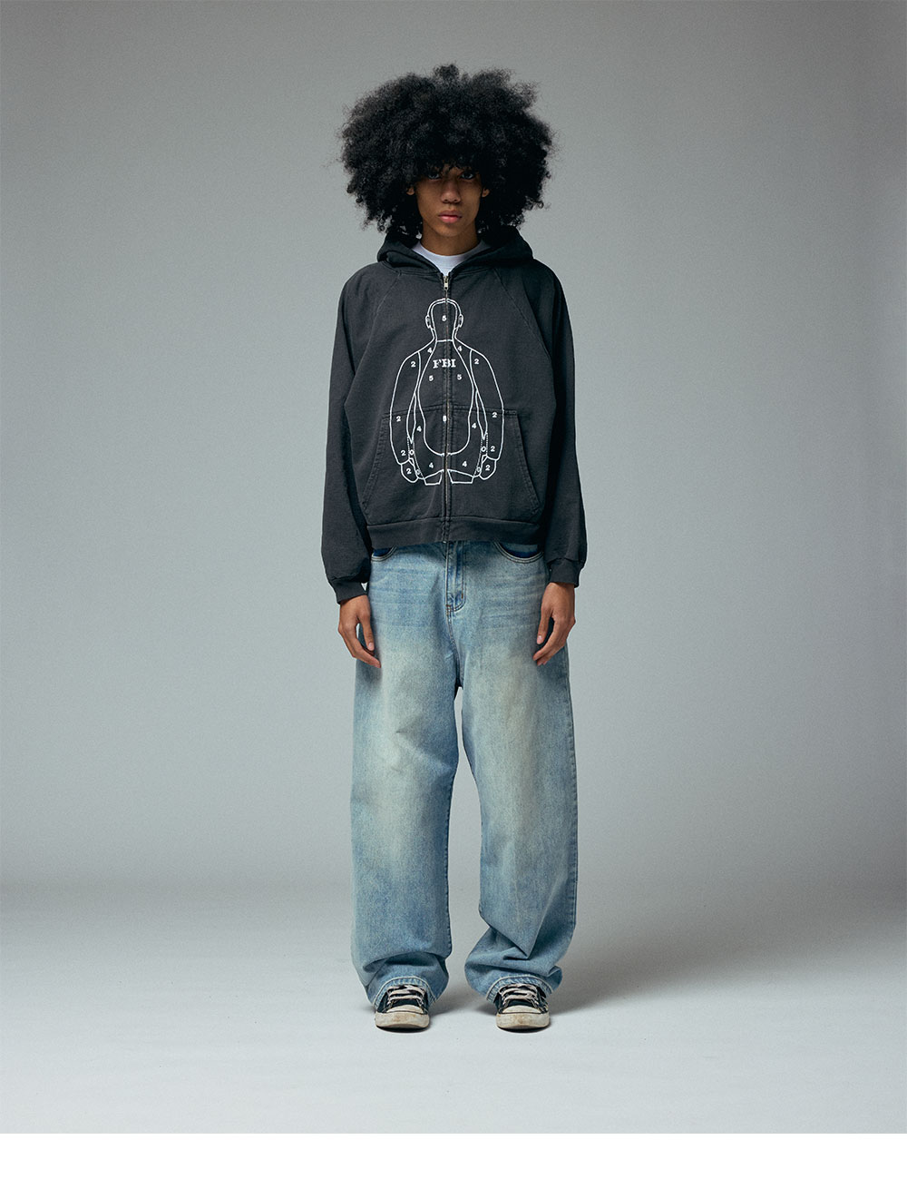 전면의 독특한 프린팅이 매력적인 바스켓케이스의 프랙티스 집 후디 빈티지 블랙입니다. - 나그랑 어깨 디자인 - 전면 인체 프린팅 디테일 - 오래 입은 듯한 느낌이 매력적인 빈티지 블랙 색상