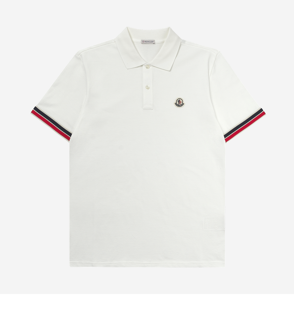 몽클레르 스트라이프 트림 코튼 피케 폴로 셔츠 화이트 - 25SS