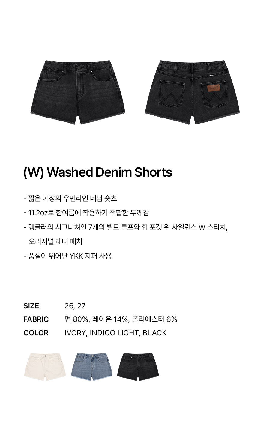 랭글러 (W) 워시드 데님 쇼츠 블랙