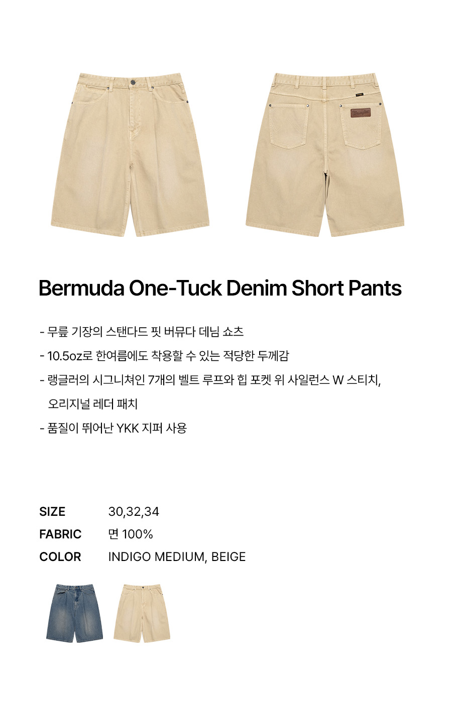 랭글러 버뮤다 원턱 데님 쇼츠 베이지