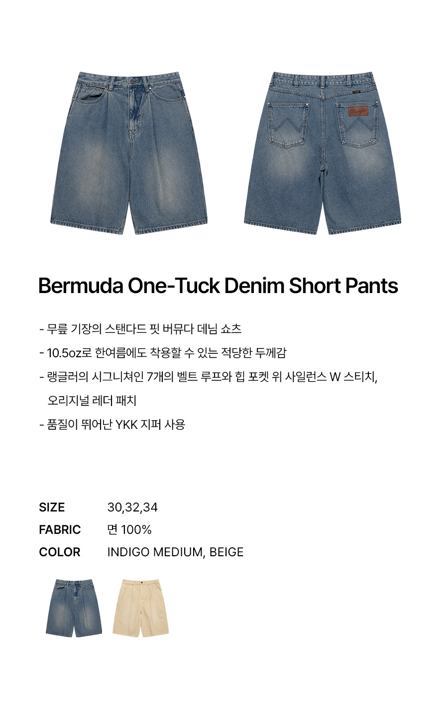 랭글러 버뮤다 원턱 데님 쇼츠 인디고 미디움