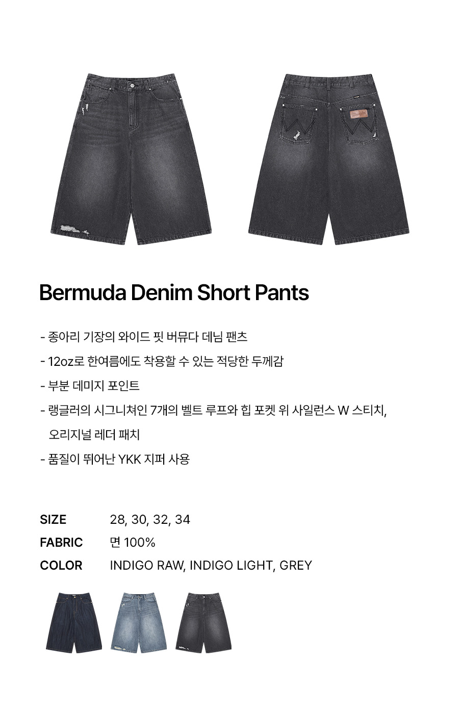 랭글러 버뮤다 데님 쇼츠 인디고 그레이