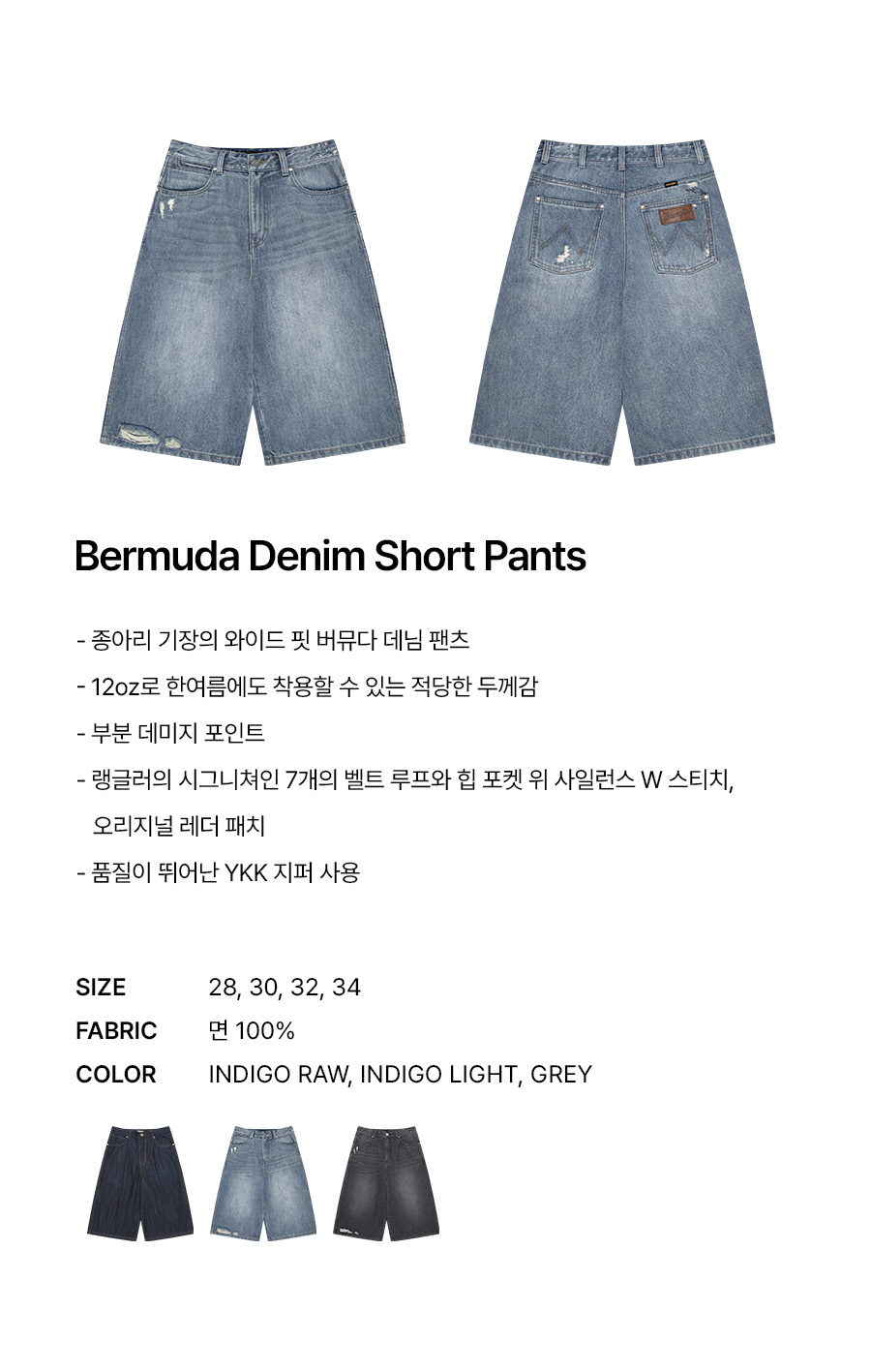 랭글러 버뮤다 데님 쇼츠 인디고 라이트