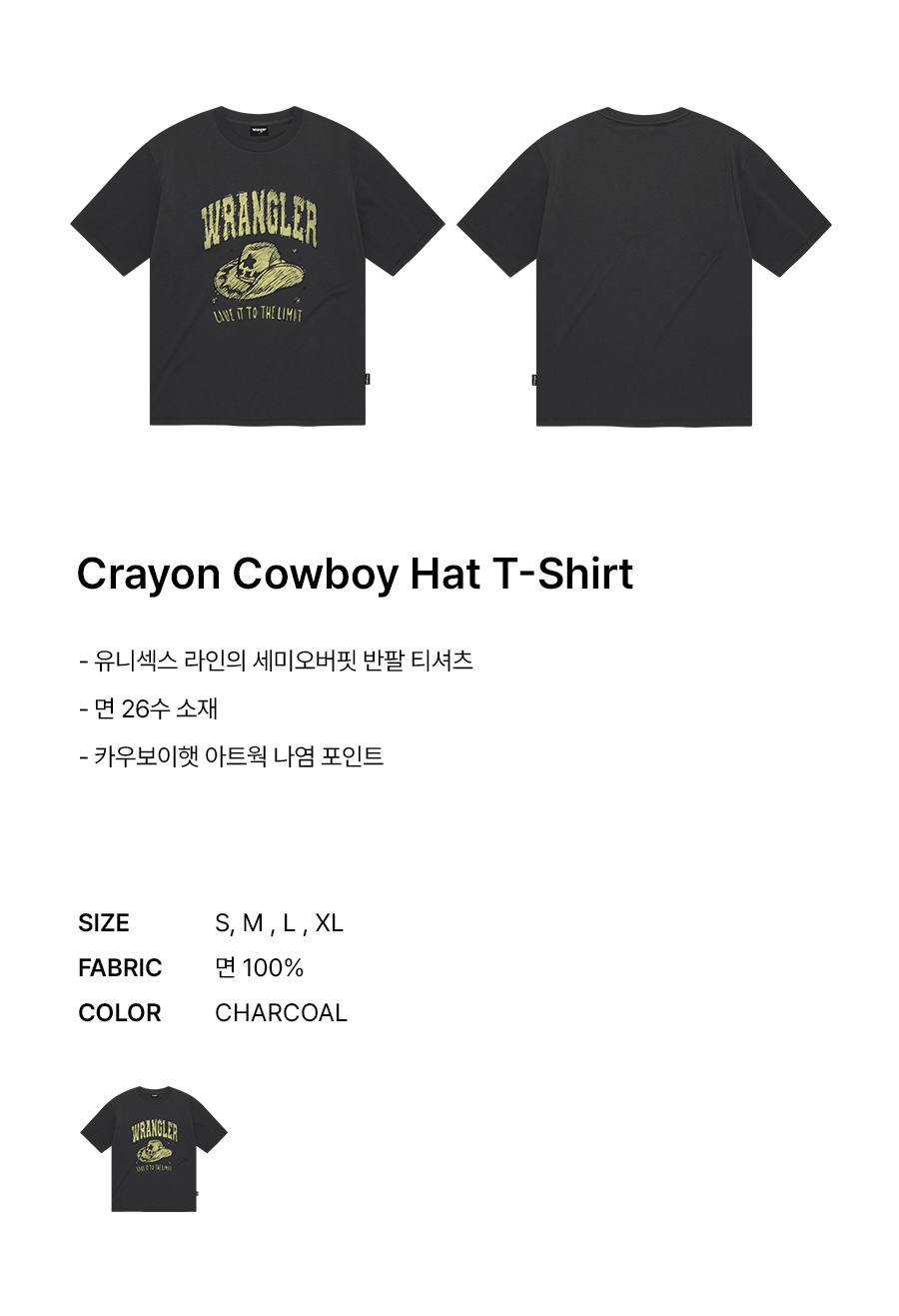 Wrangler Crayon Cowboy Hat T-Shirt Charcoal