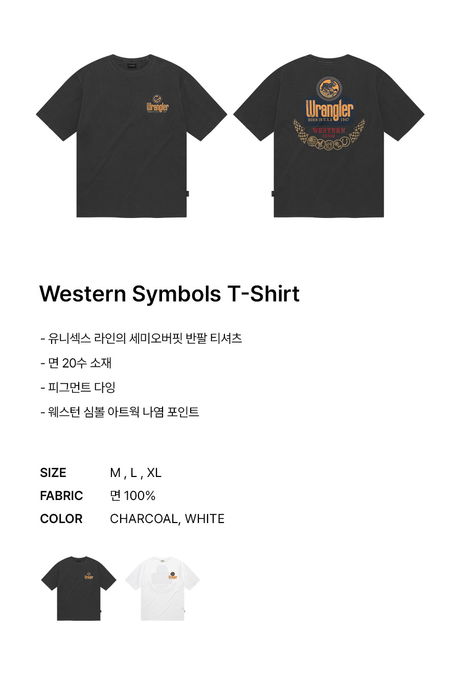 랭글러 웨스턴 심볼즈 티셔츠 차콜