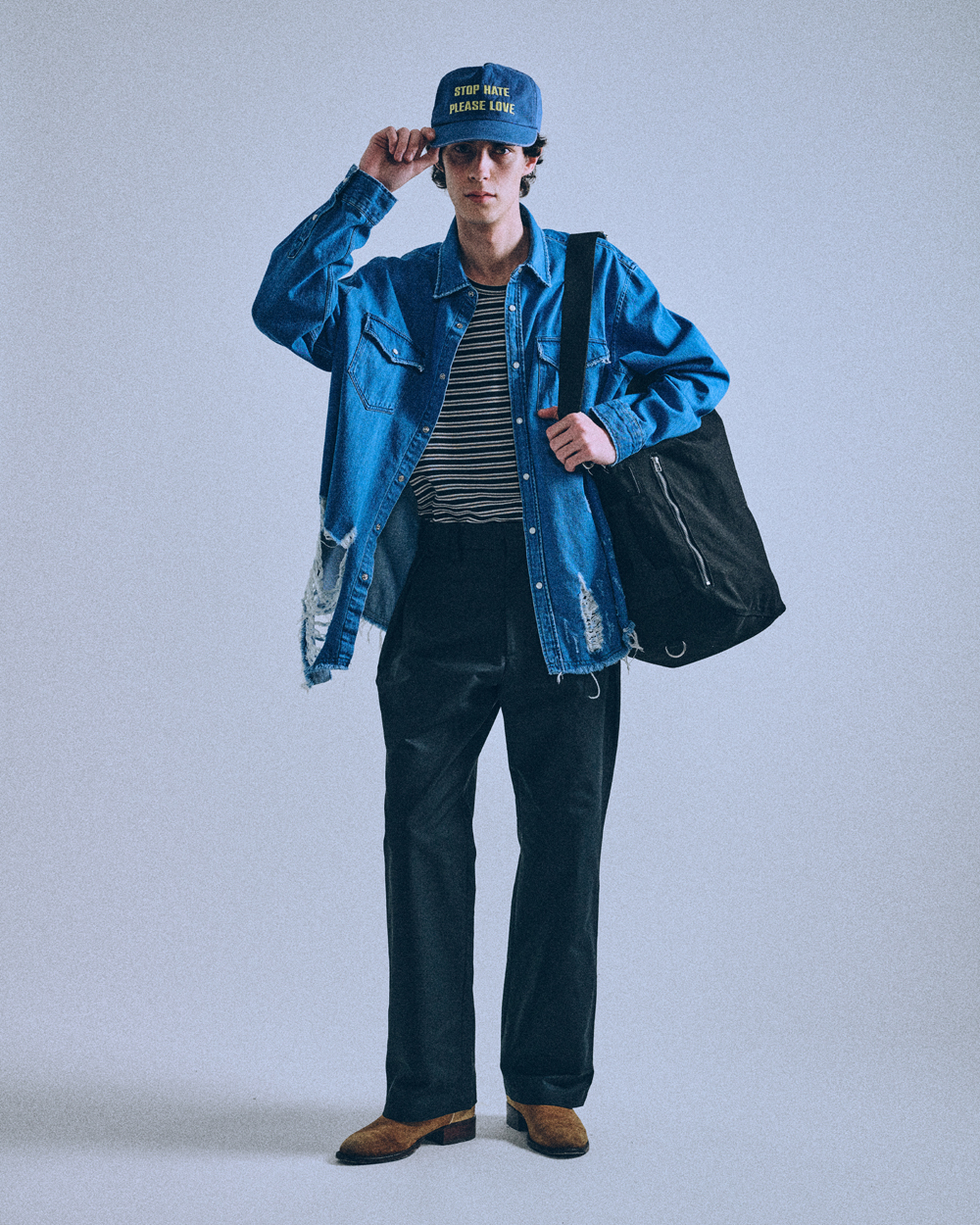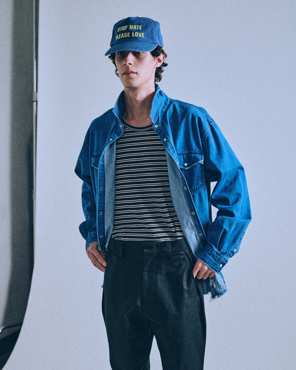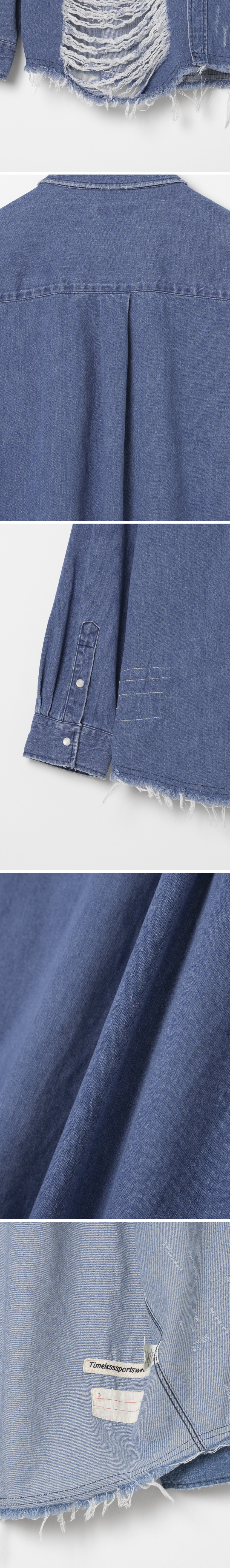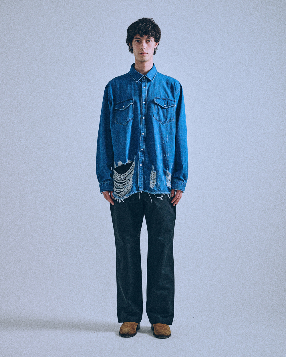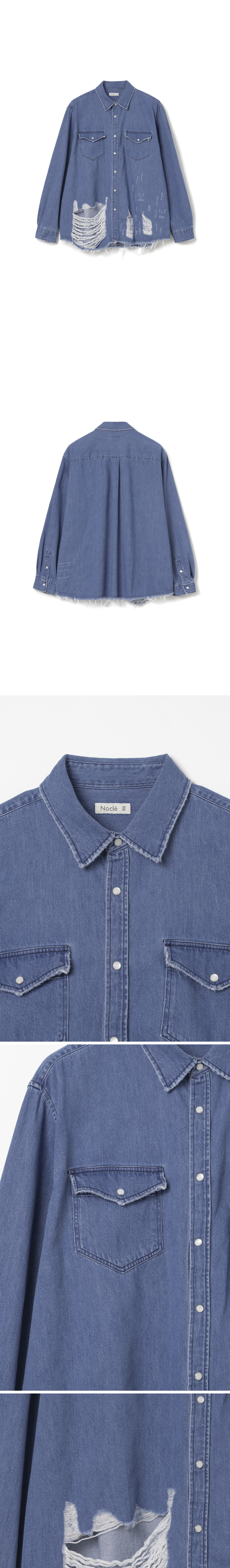 노클 디스트로이드 데님 웨스턴 셔츠 인디고