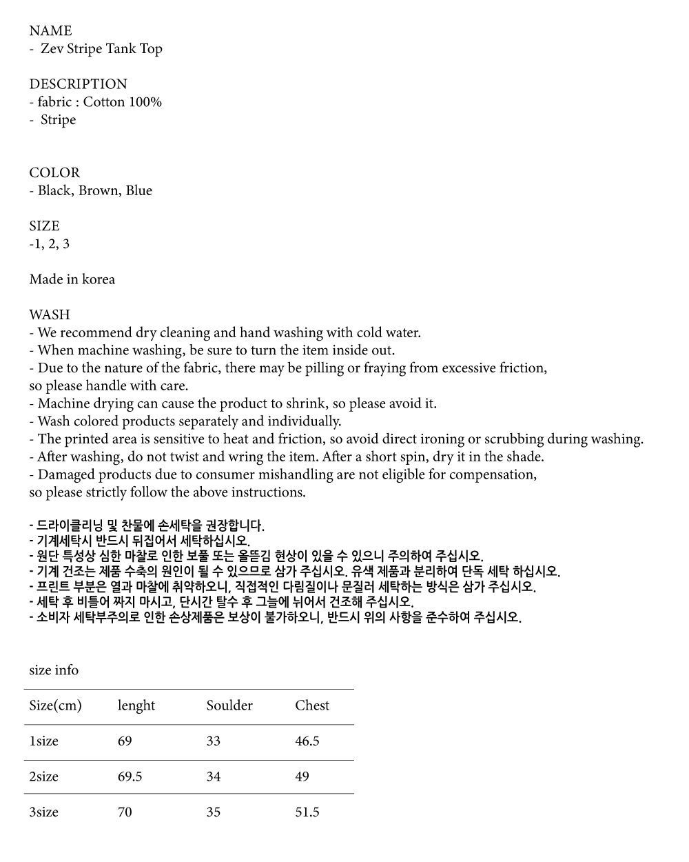 노클 제브 스트라이프 탱크탑 블랙