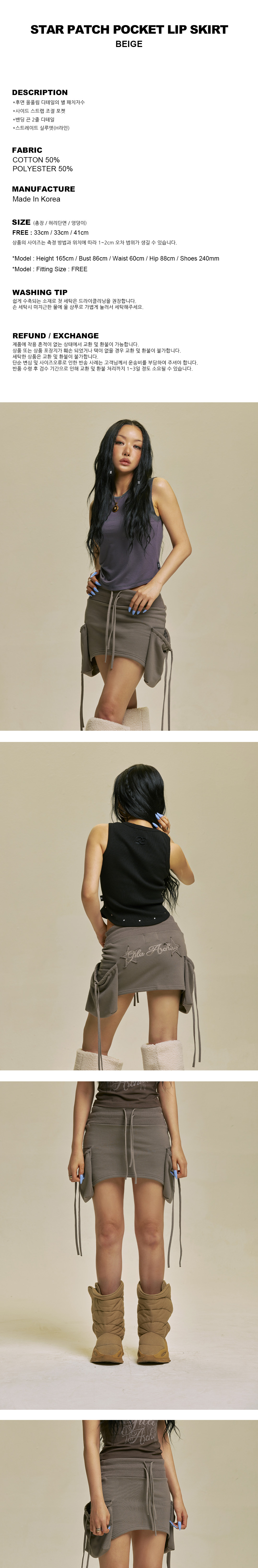 길라 아카이브 스타 패치 포켓 립 스커트 베이지