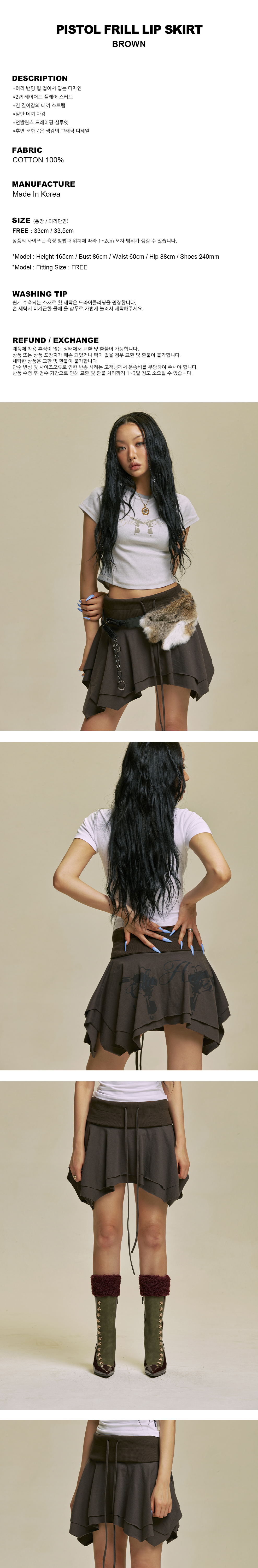길라 아카이브 피스톨 프릴 립 스커트 브라운