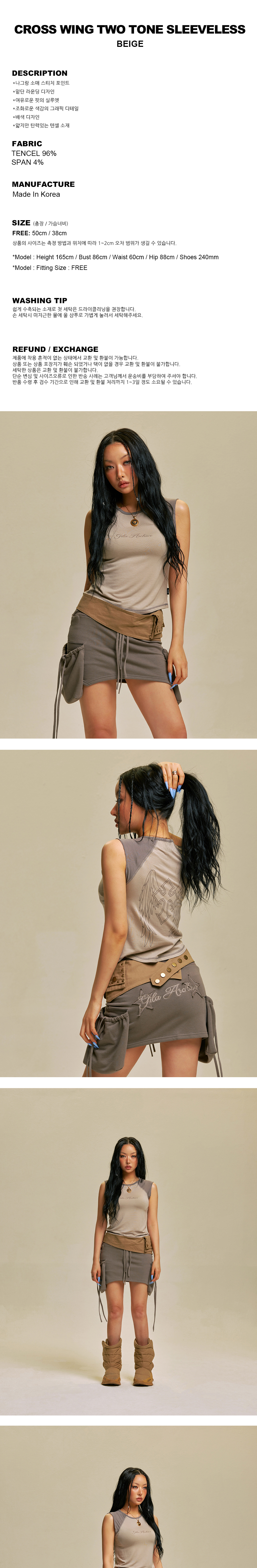 길라 아카이브 크로스 윙 투톤 슬리브리스 베이지