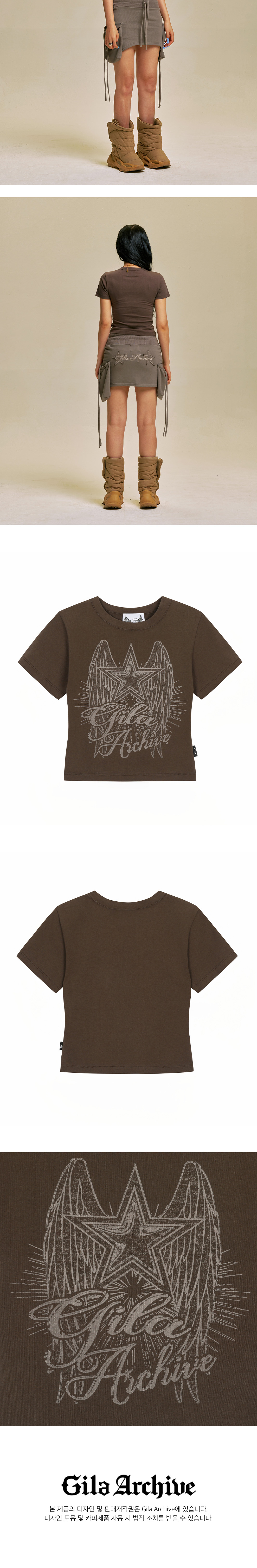 길라 아카이브 스타 윙 크롭 티셔츠 브라운