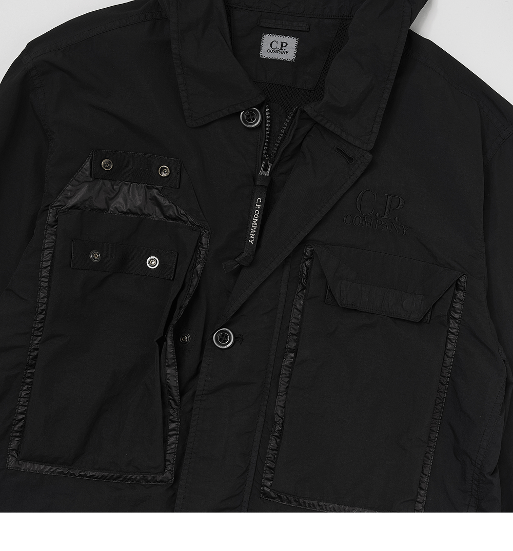 C.P. 컴퍼니 플랫 나일론 고글 오버셔츠 블랙 - 25SS