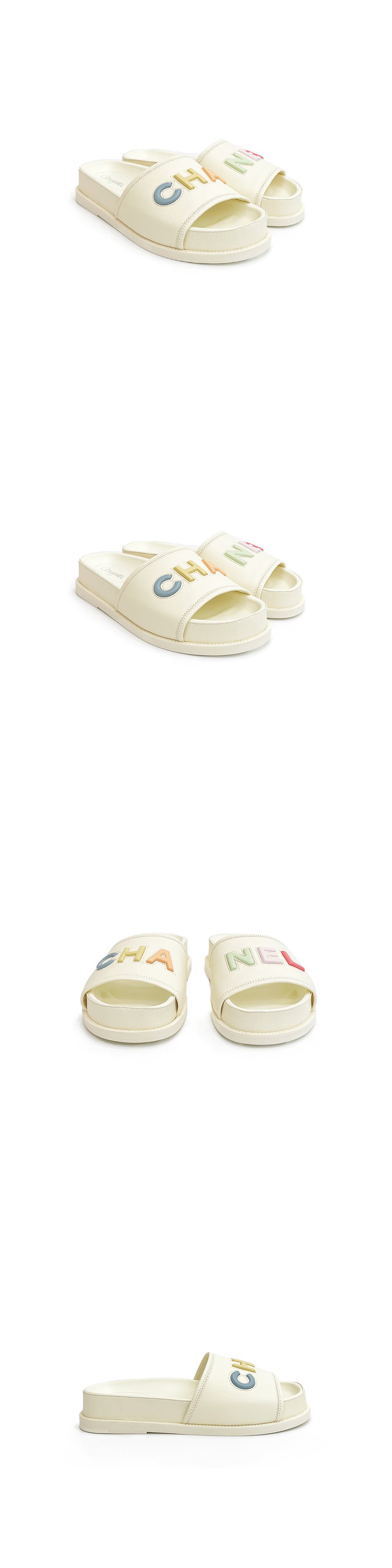 샤넬 22S 레터링 슬리퍼 40 아이보리/멀티컬러