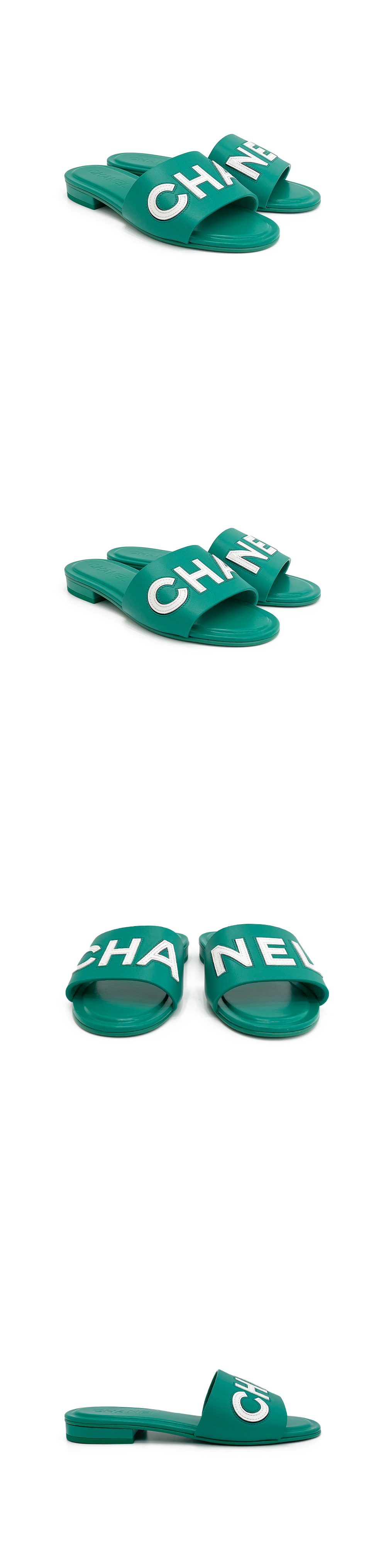 샤넬 23P 레터링 뮬 39 그린/화이트