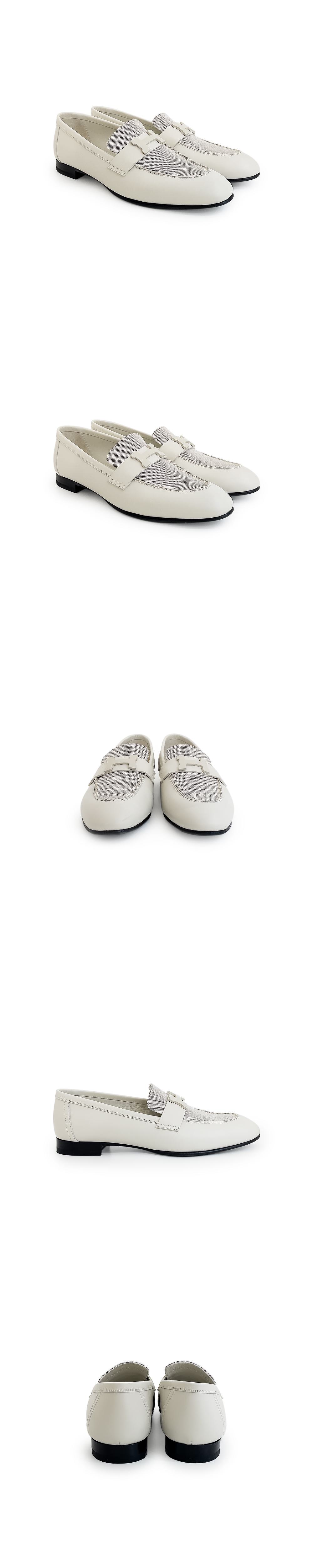 에르메스 파리로퍼 37.5 블랑드파리/푸르누아 무광 클레이베이지래커드 버클