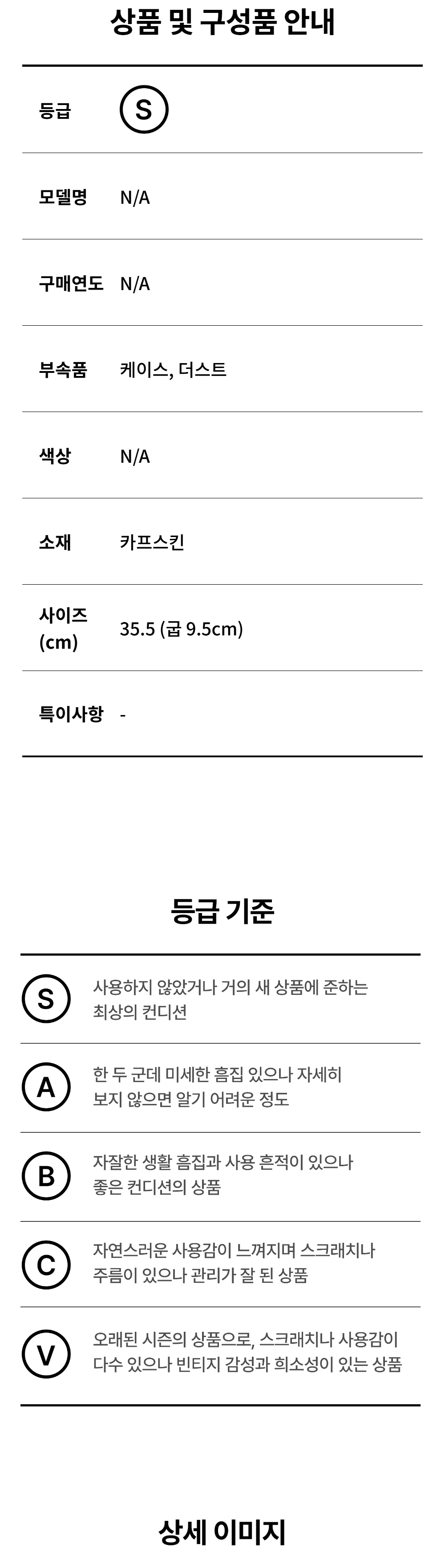 모든 상품(가죽, 의류, 잡화, 슈즈 등)은 사용자의 사용방법과 환경에 따라 변형, 변색이 될 수 있으니 반드시 취급 라벨에 표시된 관리 안내를 따르시길 권장 드립니다. 이는 정도의 차이가 있으며 과도한 체열과 땀, 습기, 빛, 마찰은 제품의 손상 및 변형을 일으킬 수 있으므로 주의하시길 바랍니다.