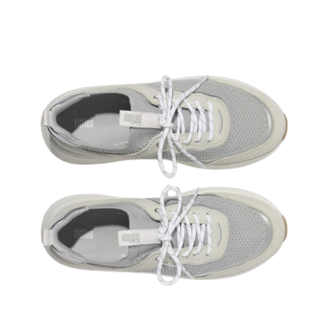 (W) FITFLOP F Mode Suede Knit Flatform Slip On Laced Sneakers Urban White French Grey