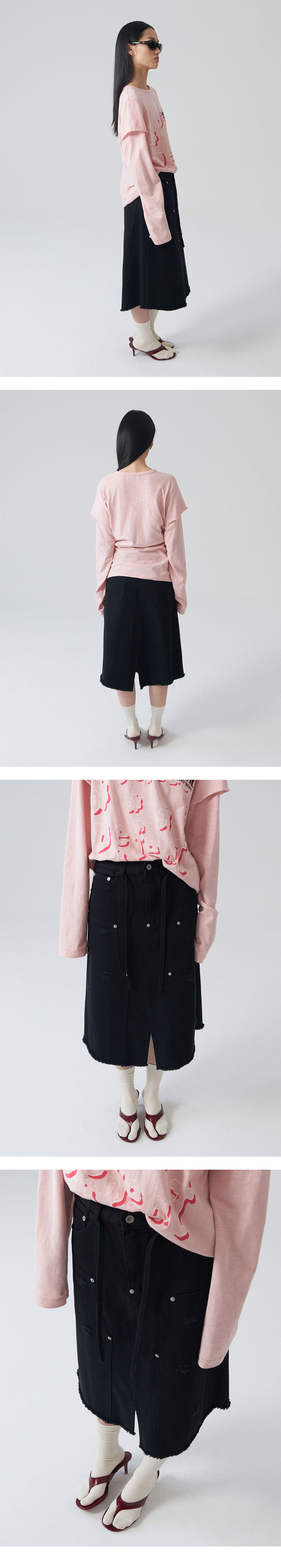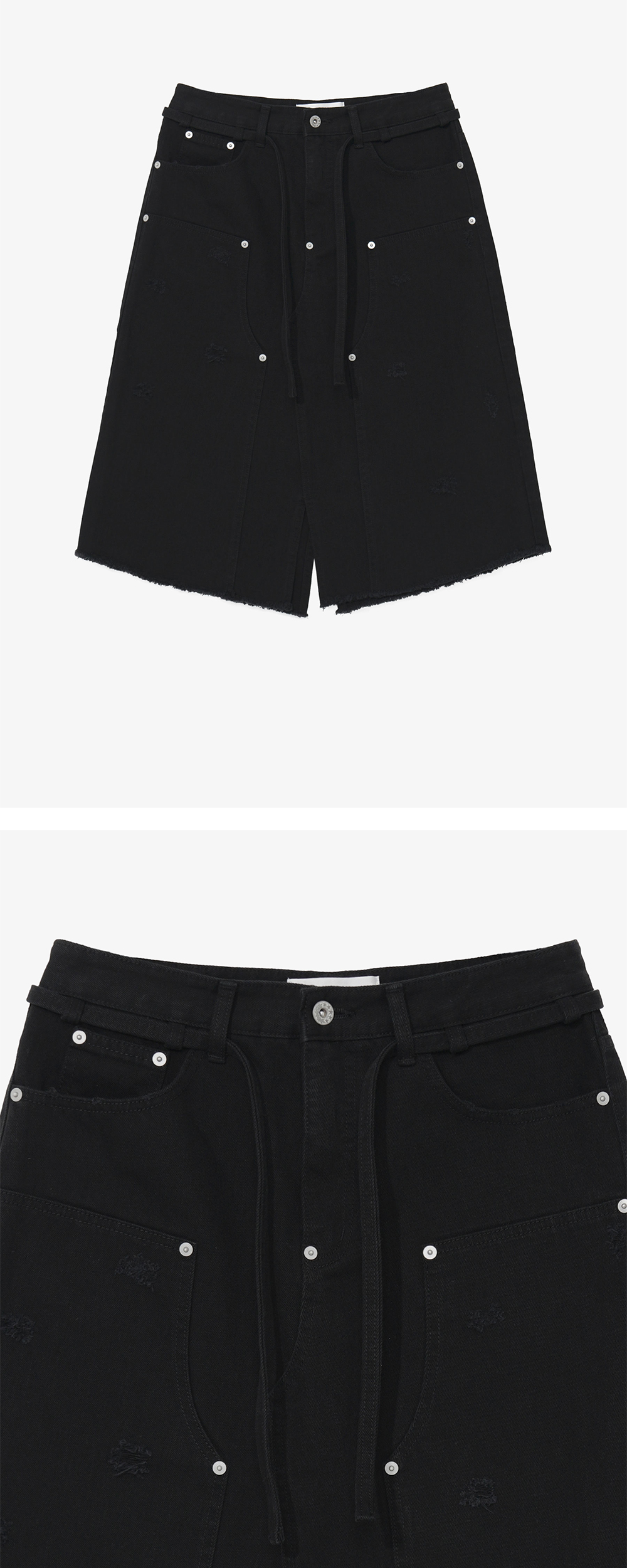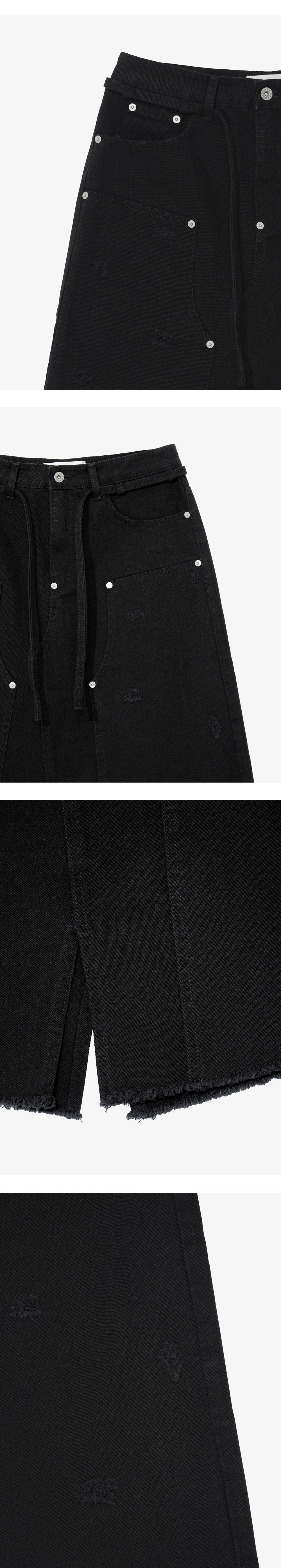 - 빈티지한 워싱감의 더블 니 패치 스커트 - 허리 조절 가능한 끈 디테일 - 포켓 입구 데미지 디테일 - 더블 니 패치 상단 데미지 디테일 - 스커트 하단 프린지 티데일 - 전면 오비 하단 리벳 디테일 - 편안한 착용감의 레귤러핏의 실루엣 * Shell : 100% Cotton * Made in Korea