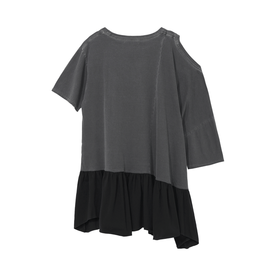 - 언밸런스 형태의 원 오픈 숄더 미니 드레스 - 오픈 숄더 디테일으로 다양한 스타일링 연출 용이 - 어깨라인 체인스티치 보강 - 하단 스커트 배색 원단 - 하단 자연스러운 셔링 디테일 - 피그먼트 다잉 기법 - 오버사이즈의 핏의 여유로운 실루엣 * Shell : 100% Cotton * Made in Korea