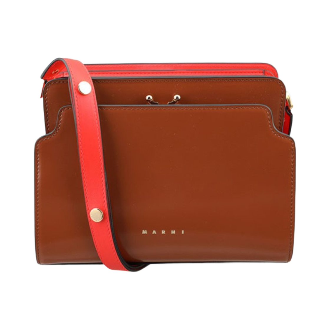Marni Bi-Coloured Shiny Leather Medium Reverse Trunk Bag Brown