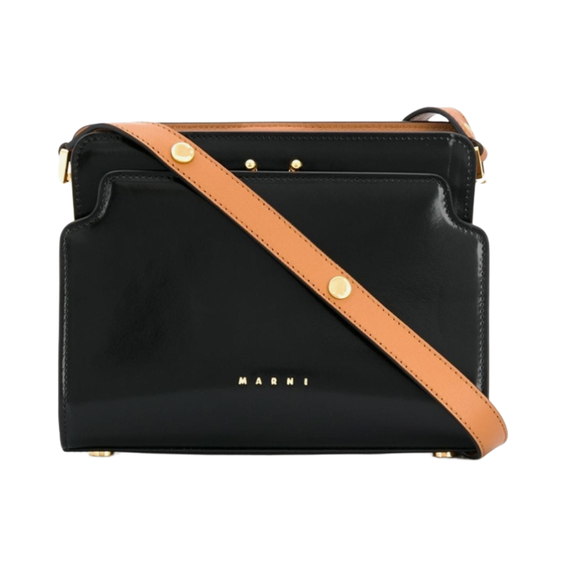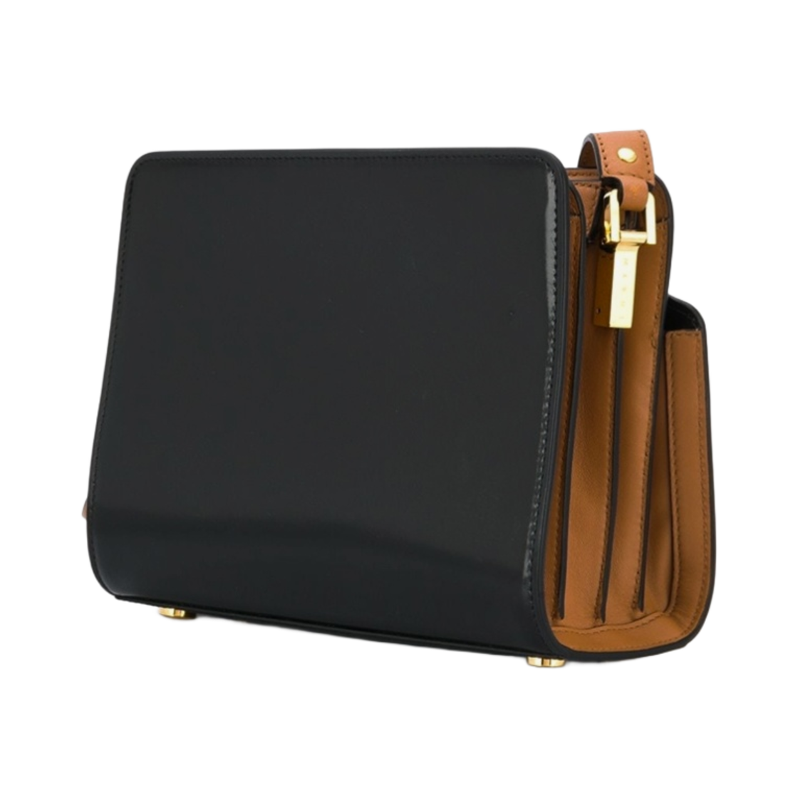 Marni Bi-Coloured Shiny Leather Medium Reverse Trunk Bag Black