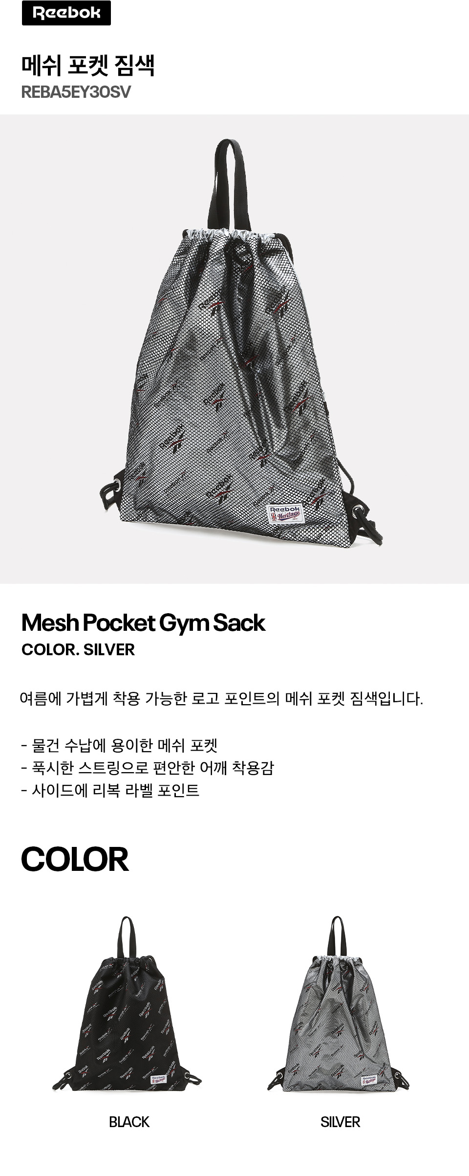 리복 메쉬 포켓 짐색 실버
