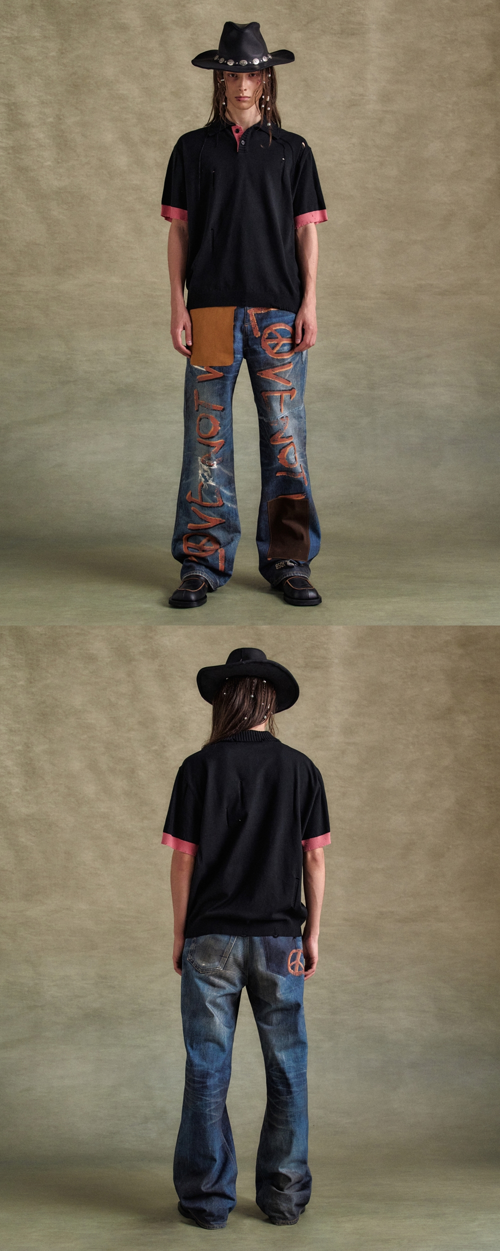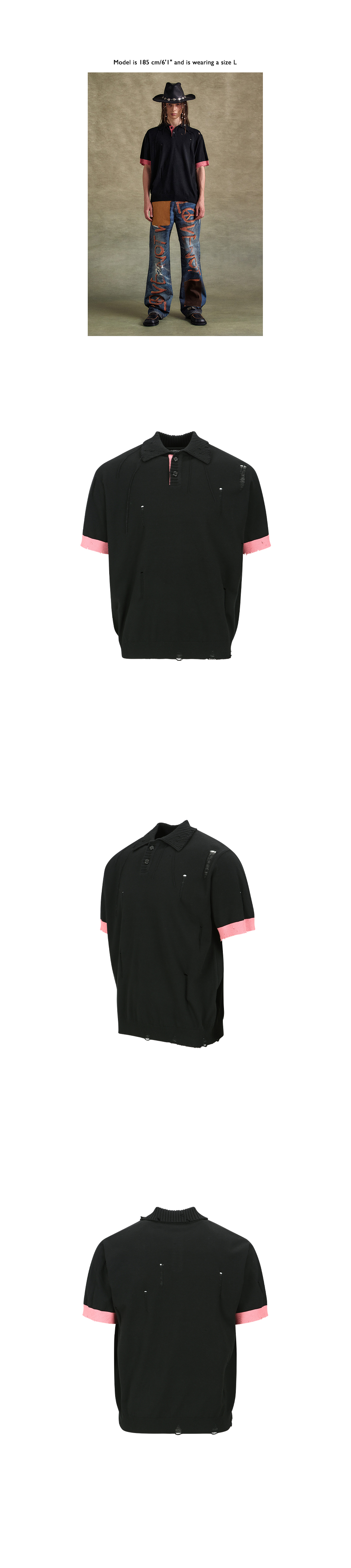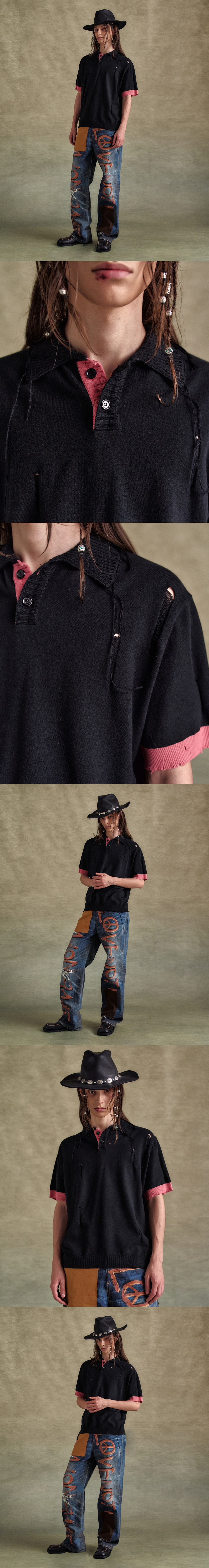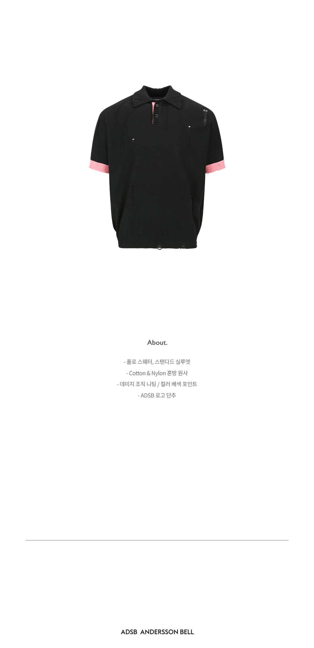 ADSB 앤더슨벨 데미지 폴로 스웨터 블랙 핑크