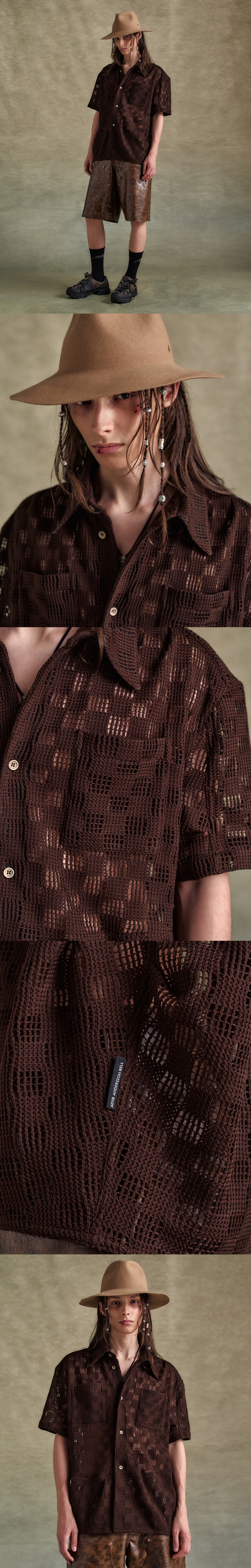 ADSB 앤더슨벨 레토 니트 셔츠 브라운