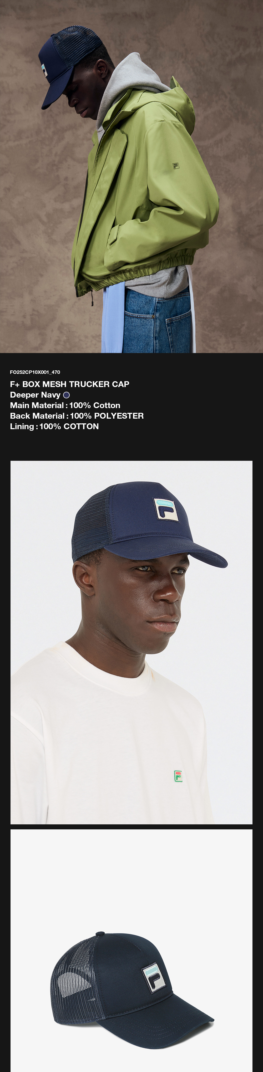 [6% 적립] FILA F+ Box Mesh Trucker Cap Deeper Navy
