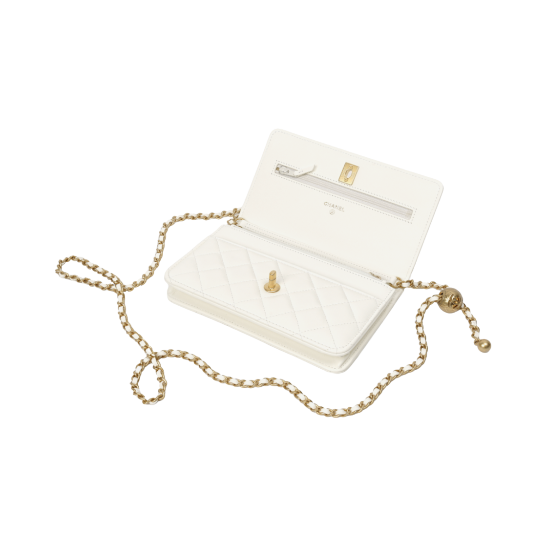 샤넬 체인 지갑 램스킨 & 골드 메탈 화이트