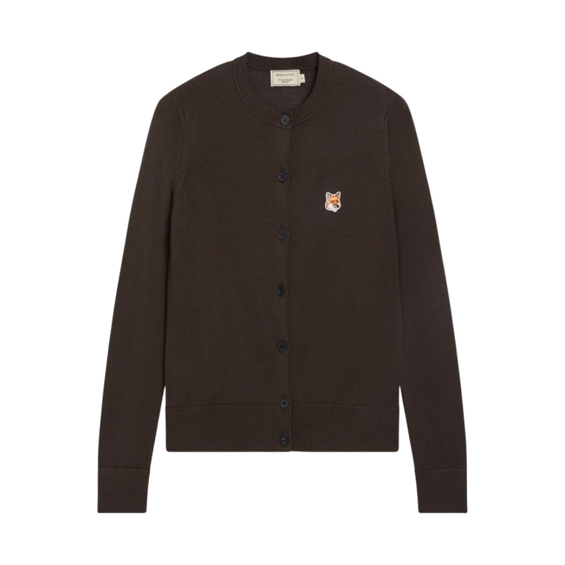 (W) Maison Kitsune Fox Head Patch R-Neck Cardigan Light Khaki