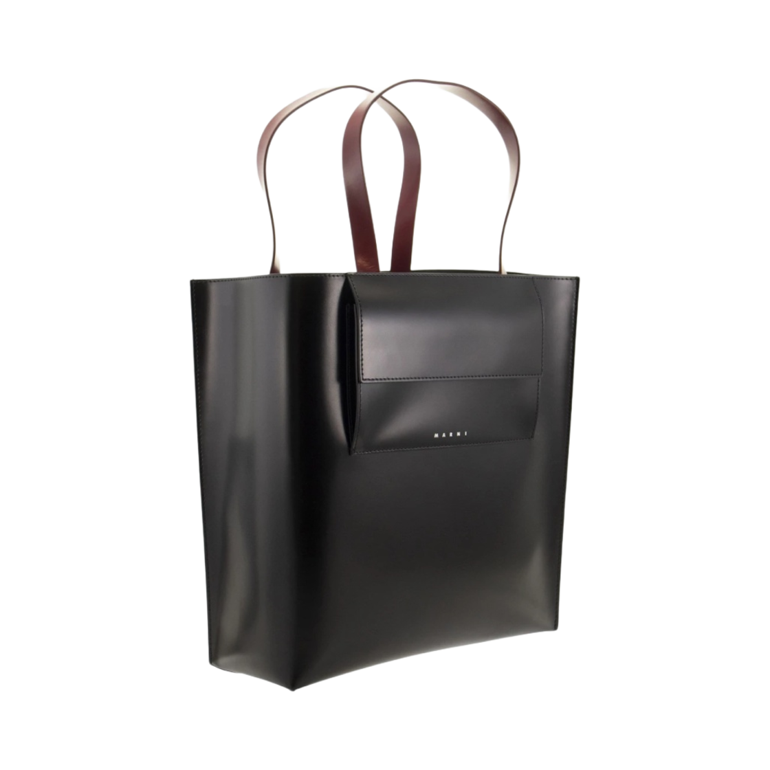Marni Smooth Shiny Calfskin Leather Museo Shopping Bag Black