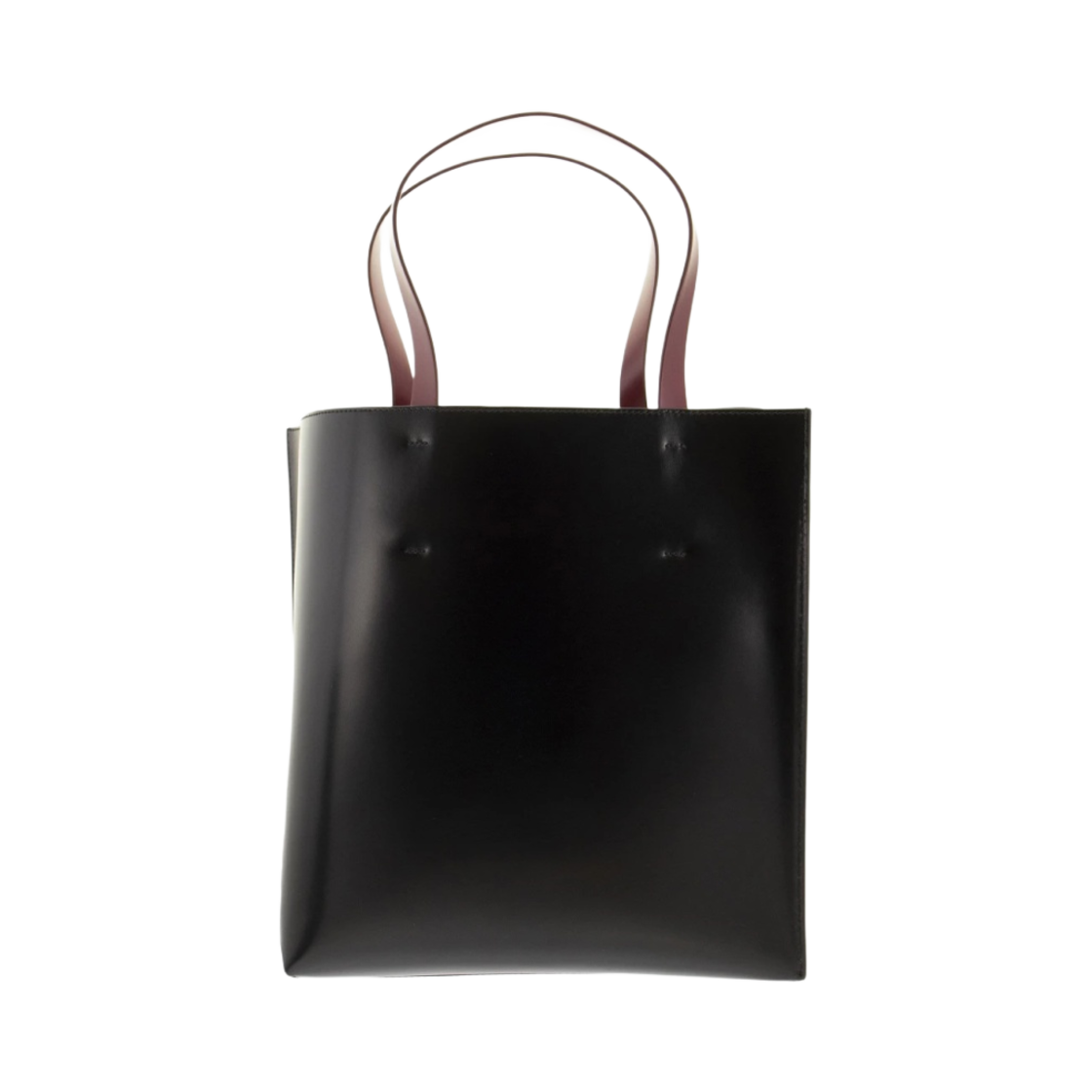 마르니 스무스 샤이니 카프스킨 레더 뮤제오 쇼핑백 블랙
