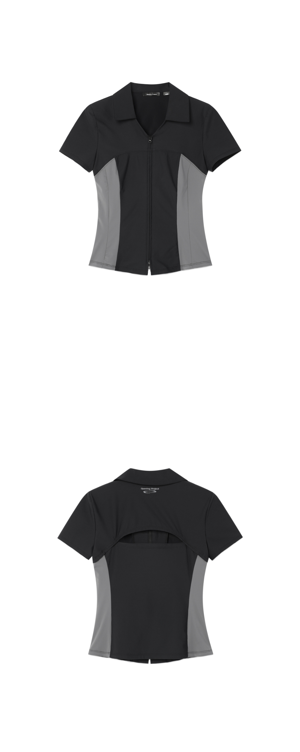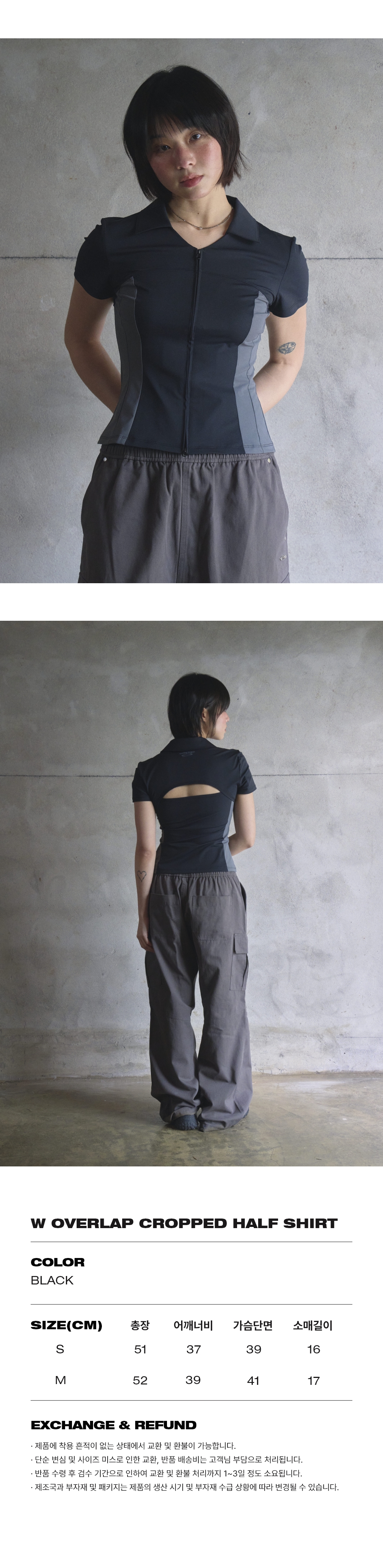 오프닝프로젝트 W 오버랩 크롭 하프 셔츠 블랙