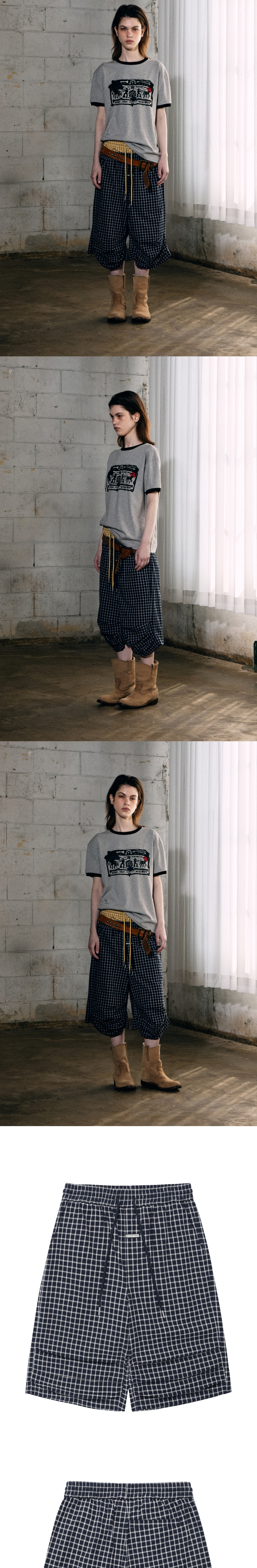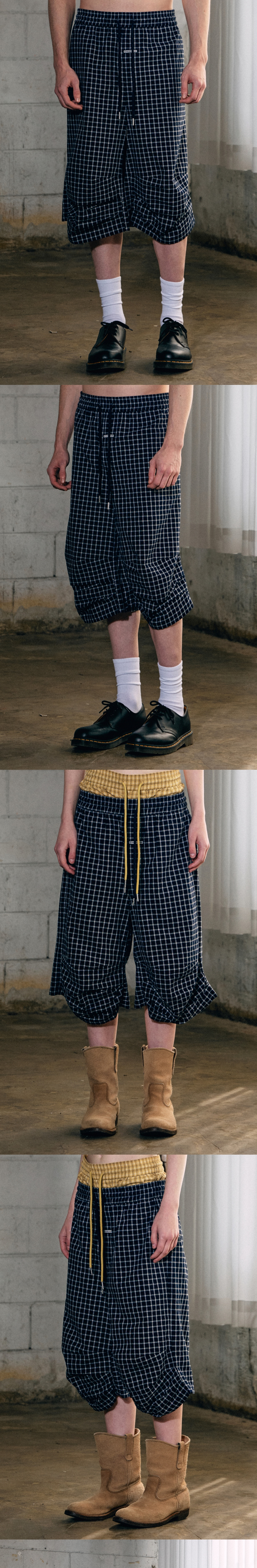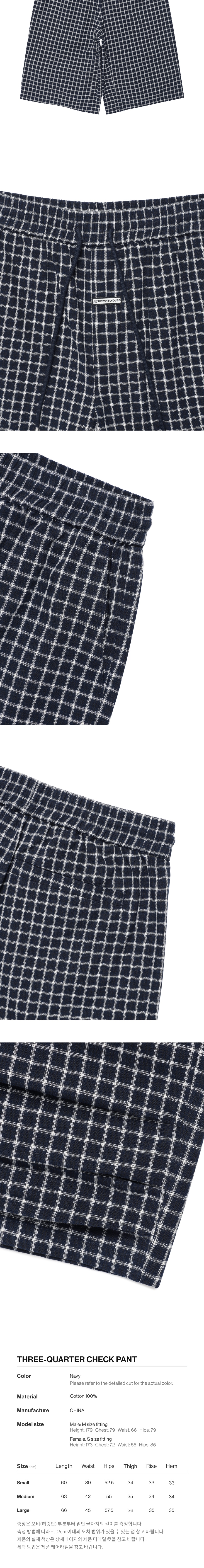더바이닐하우스 3 쿼터 체크 팬츠 네이비