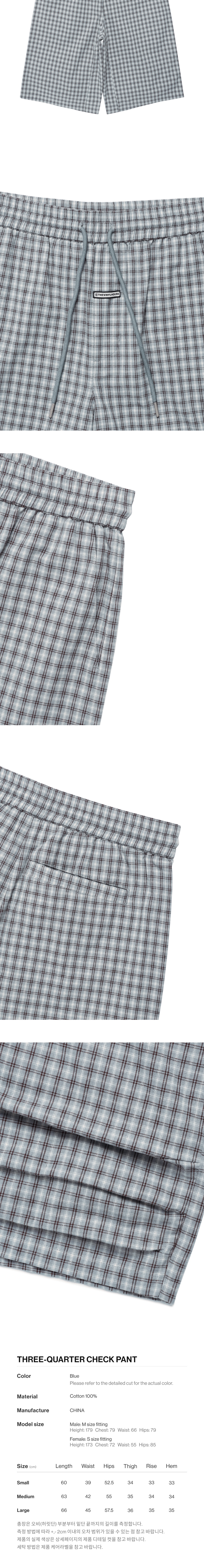 더바이닐하우스 3 쿼터 체크 팬츠 블루