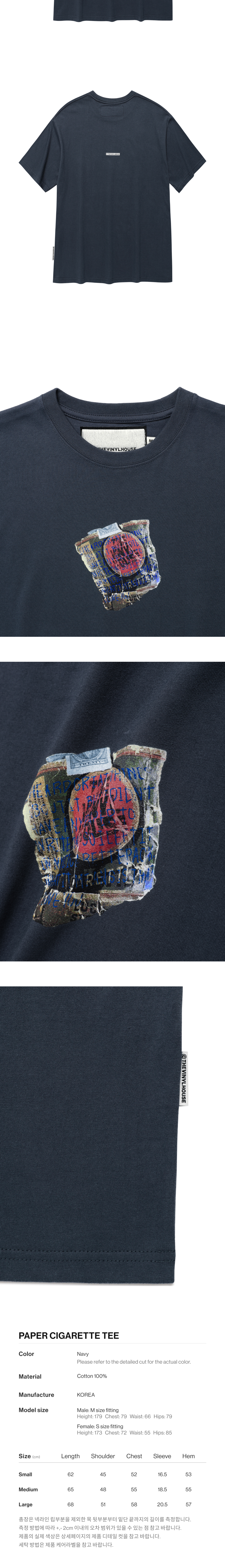 더바이닐하우스 페이퍼 시가렛 티셔츠 네이비