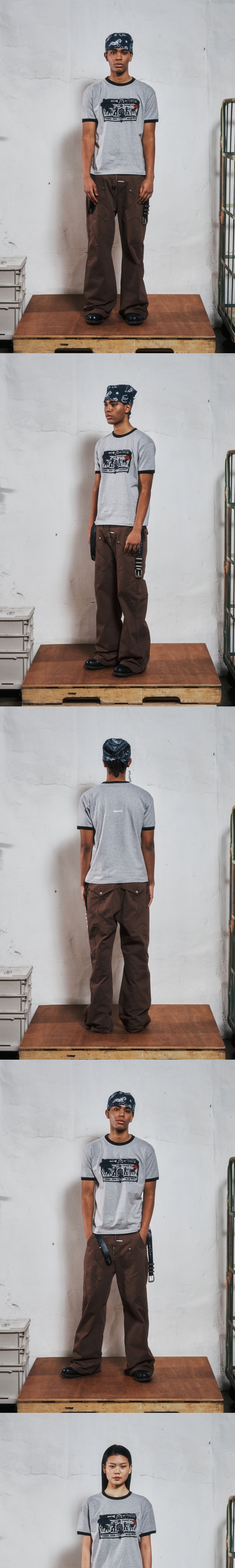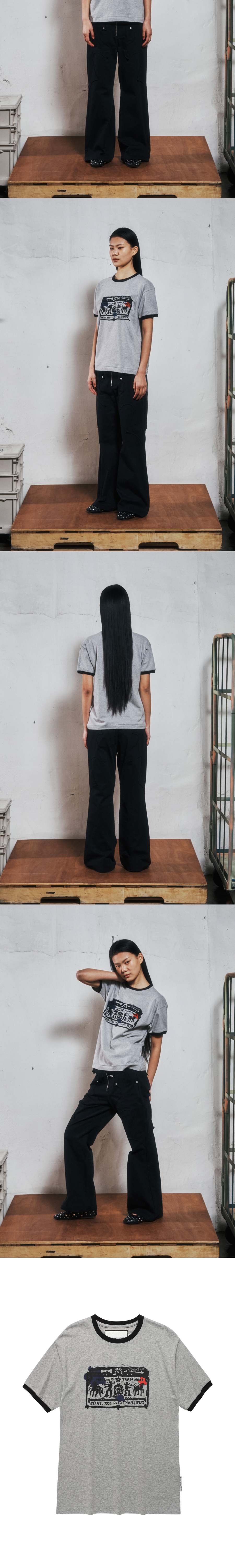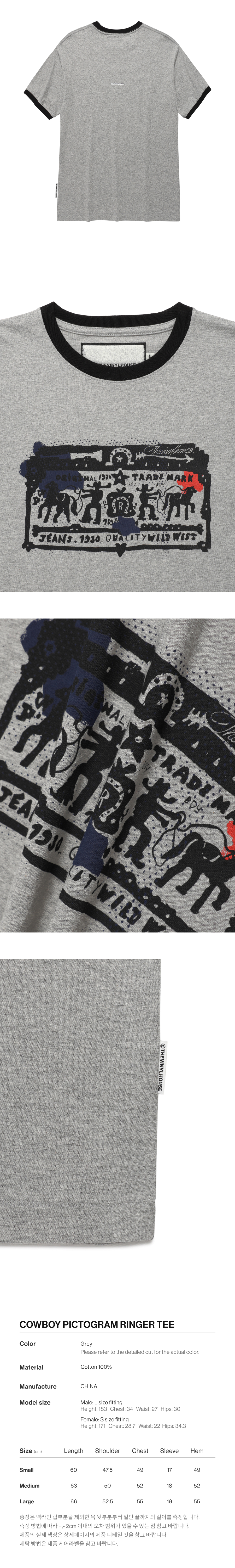 더바이닐하우스 카우보이 픽토그램 링거 티셔츠 그레이