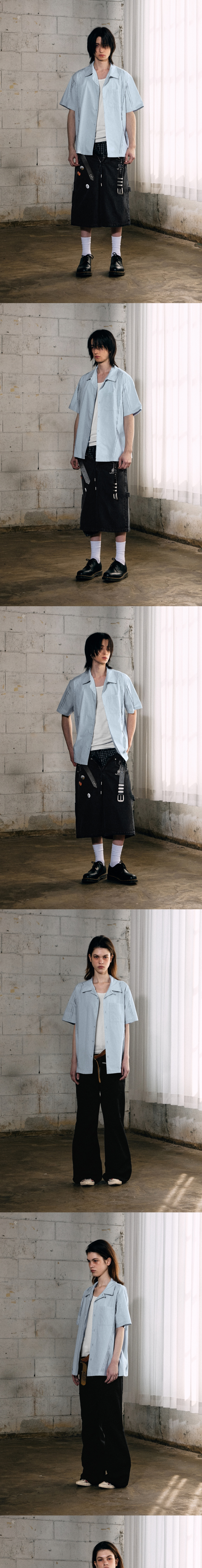 더바이닐하우스 커브드 반팔 셔츠 블루