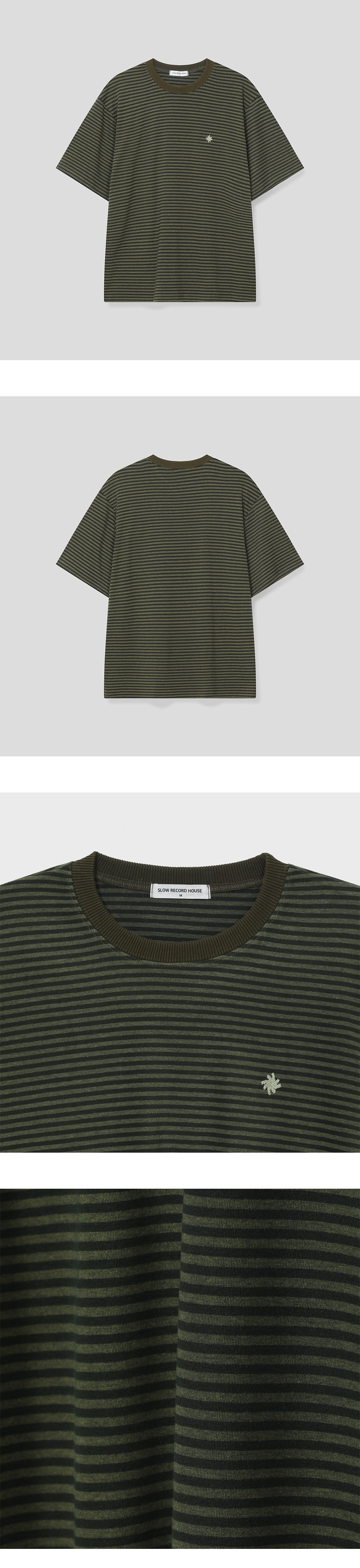 슬로우 레코드 하우스 스트라이프 반팔 티셔츠 카키