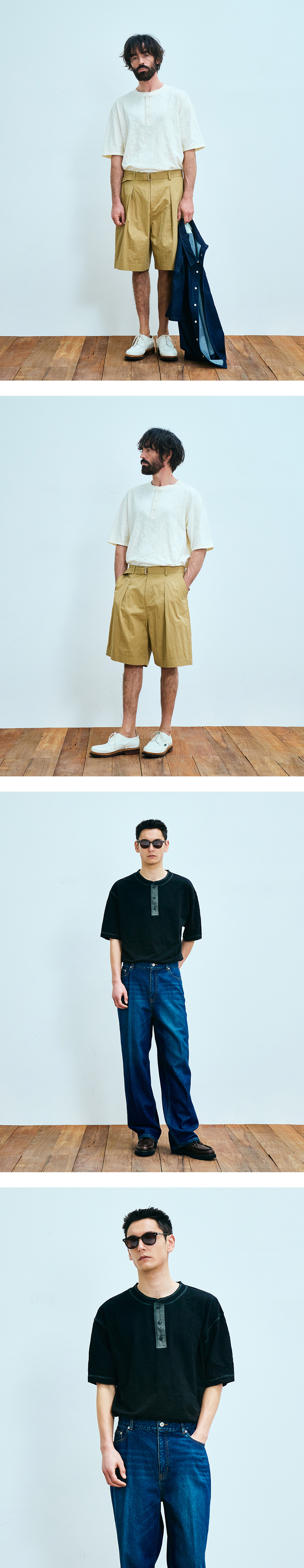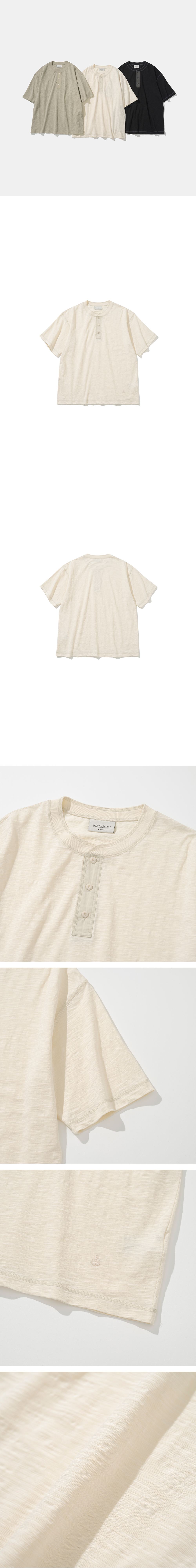 유니폼브릿지 슬럽 헨리넥 숏슬리브 티 아이보리