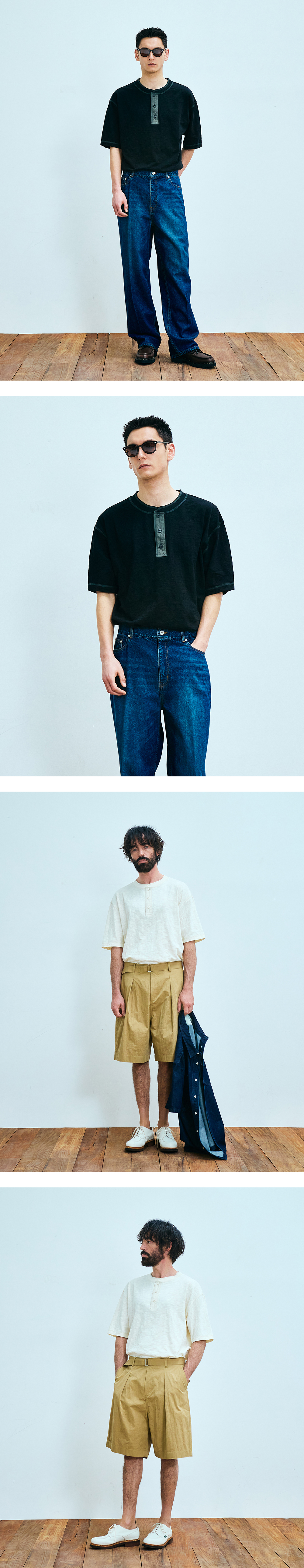 유니폼브릿지 슬럽 헨리넥 숏슬리브 티 블랙